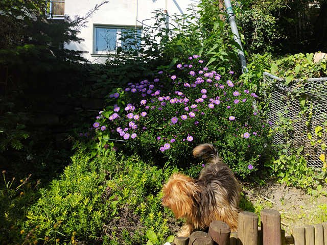 Und eine Herbstaster entwickelt sich prächtig, seit wir sie umgepflanzt haben (die beiden anderen daneben mickern jedoch nach wie vor vor sich hin).