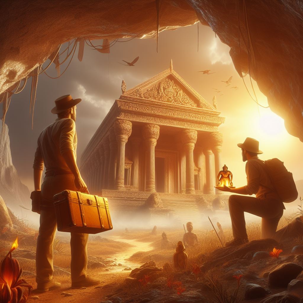 Unser Held. war. bereit, in. den. Tempel zu. gehen,. um das Artefakt zu. bergen.