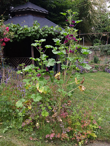Der gemeine Dost wächst bei mir auch, ebenso die Moschusmalve. Die ist als Zweijährige bei mir ja auch immer ein Überraschungsgast. Hat sie sich durch Versamung vermehrt und wenn, wo erscheint sie? :-k Dieses Jahr ist sie mitten zwischen dem Storchschnabel gewachsen.