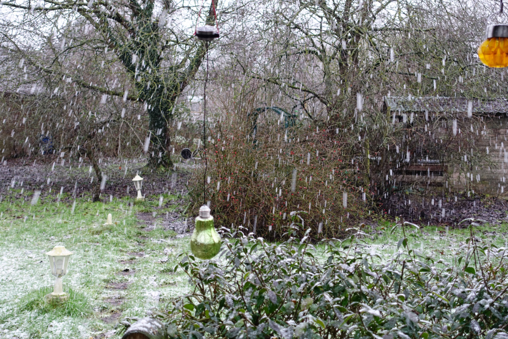 Bei uns hat es heute geschneit. Es ist nichts liegen geblieben, aber die Luft war volle Schneeflöckchen!