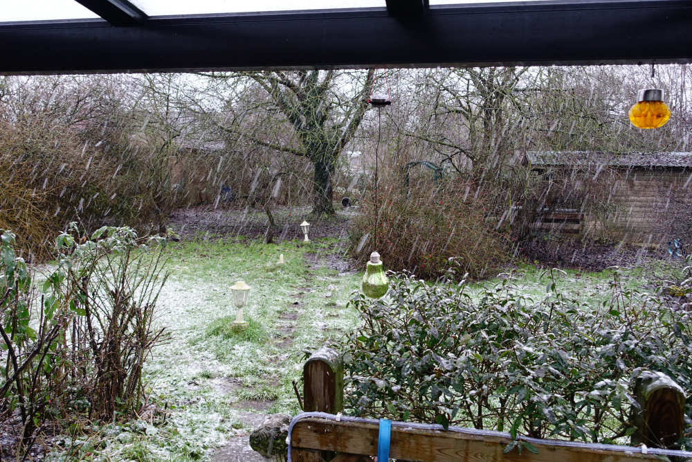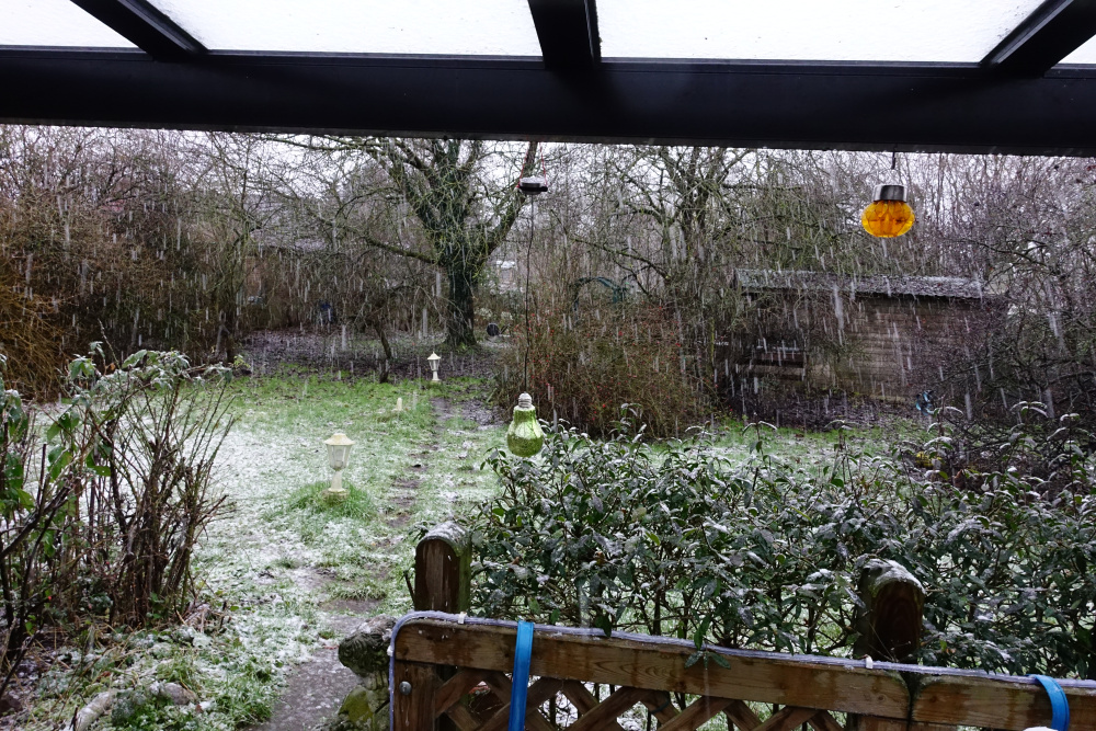 Es regnet gerne mal, manchmal schnechnet oder schneit es auch, wie jetzt gerade, aber auf dem Boden bleibt bisher nichts liegen. Kein Bodenfrost.