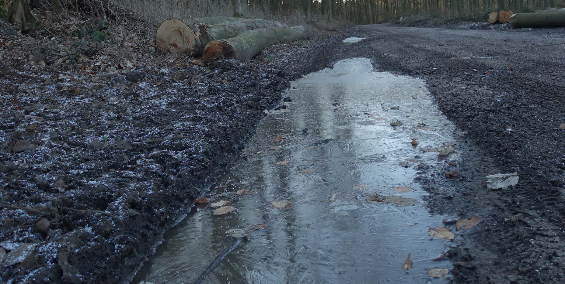 Heute gegen 8 Uhr: +1° bei Sonnenschein und Windstille. Die Pfützen waren gefroren.