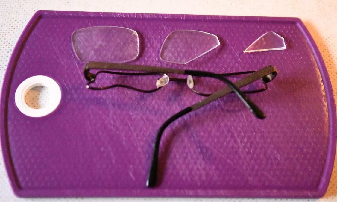 Gestern hat Dusty sich meiner Fernsehbrille gewidmet. Schön, dass ich auch neben dem zerkauten Rahmen auch die teilweise zerkauten Brillengläser gefunden habe. Ein Glas war zerkaut, ich habe aber alle Puzzle-Teile gefunden und Dusty blutet auch nicht!!!