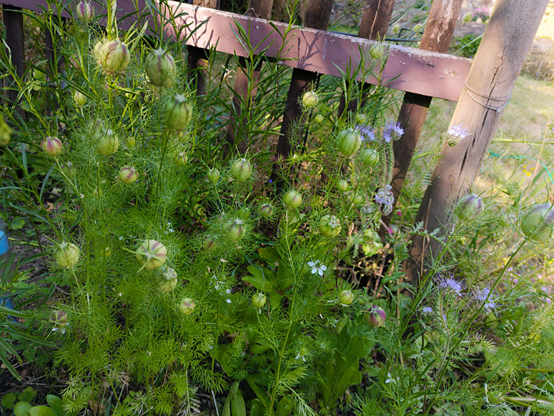 Damaszner Schwarzkümmel ist recht robust, aber auch nur einjährig, sät sich bei uns allerdings gut aus und erscheint auch schon mal an anderen Ecken des Gartens.