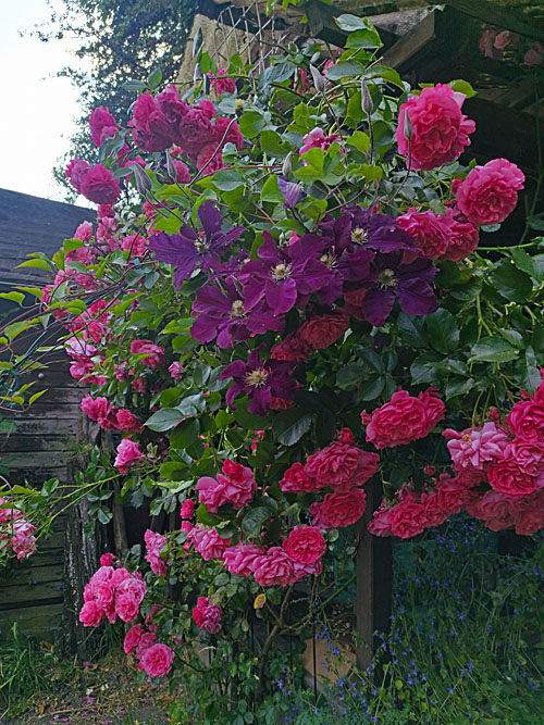 Schließlich und endlich noch ein Blick zurück: Beides ist verblüht, aber die Rosen sammeln neue Kräfte ...