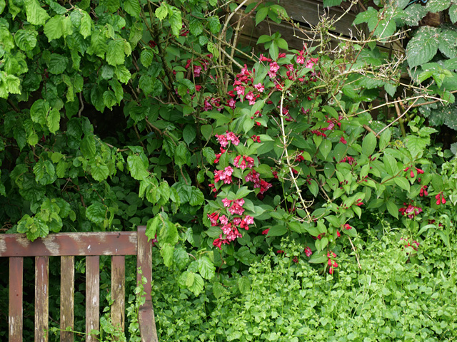 Und unsere Weigelie blüht ebenfalls vor sich hin: