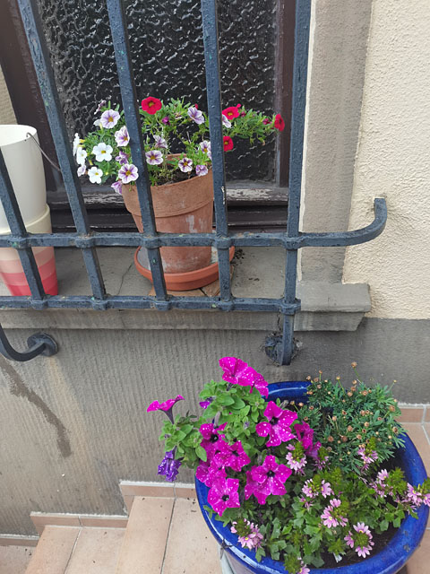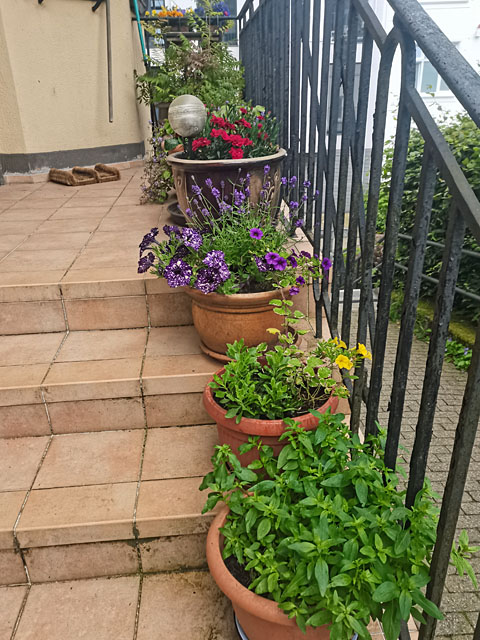 Auf der Treppe sehe ich - glaube ich - ganz viele Einjährige. Damit kenne ich mich mal so überhaupt nicht aus.