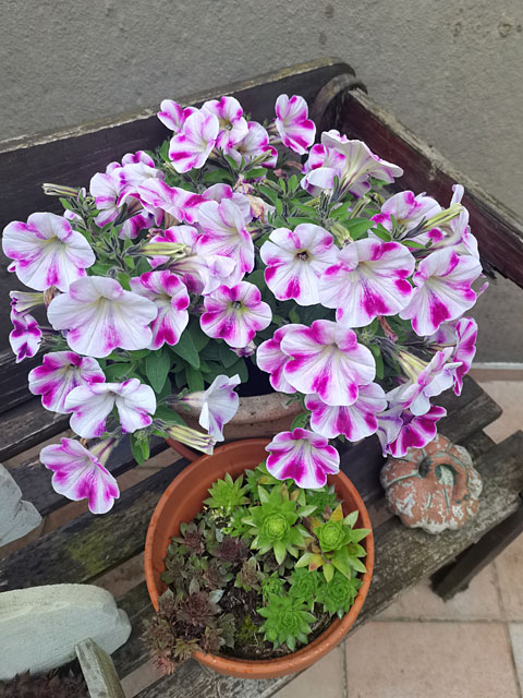 Das spärlich bewachsene war mal eine üppige Petunie. Die Asternreste habe ich nicht geknipst. Wobei, die Astern, die meine Mutter gepflanzt hatte, wurden vor allem als junge Pflänzchen immer Opfer der Schnecken.