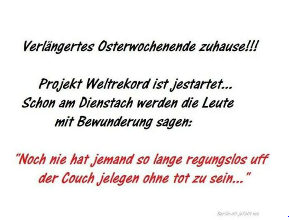 Ich wünsche euch schon mal ein schönes, langes Osterwochenende!