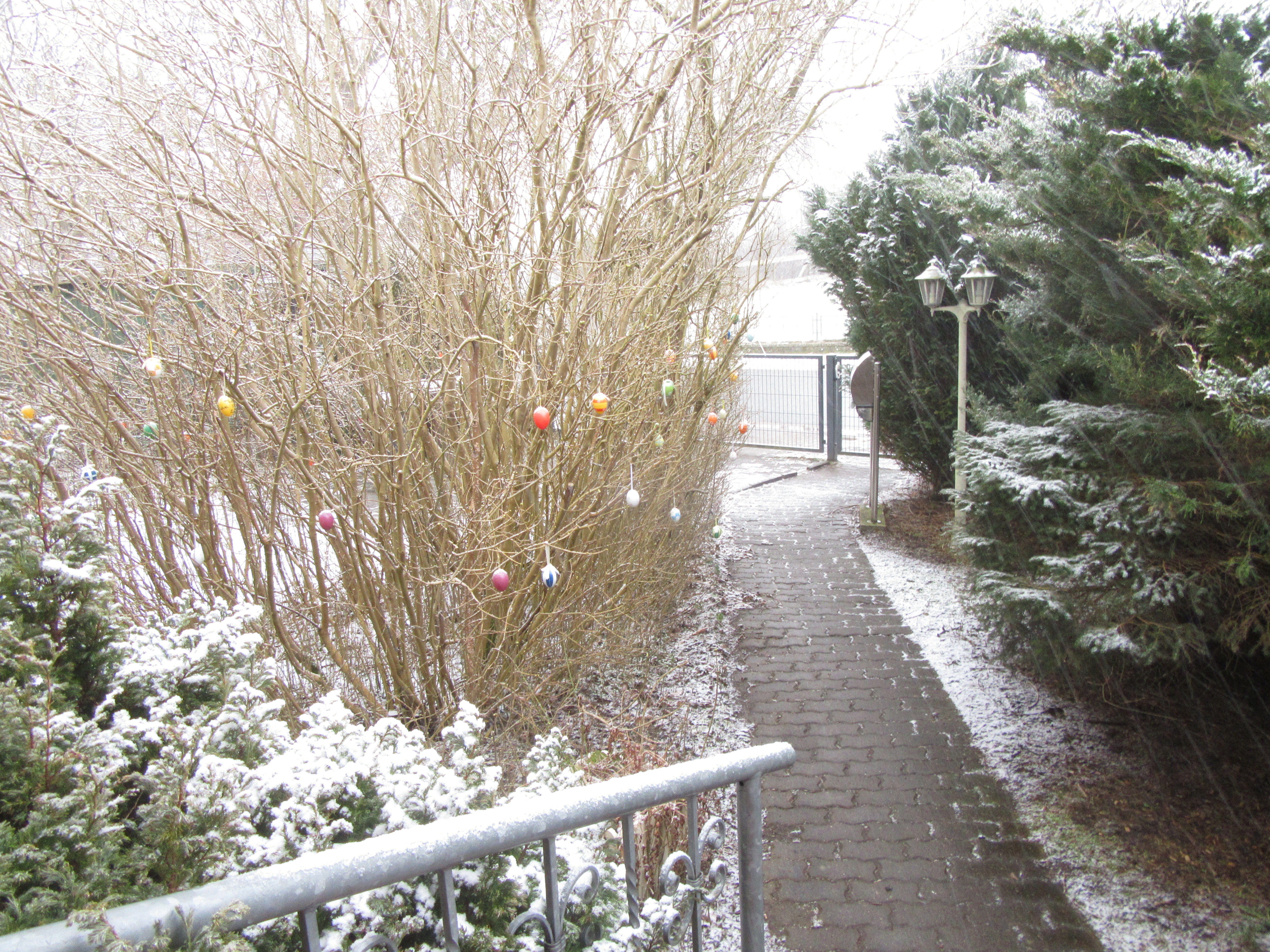 1. Osterfeiertag: Es schneit noch immer.... Damit haben sich wohl die Osterspaziergänge erledigt.