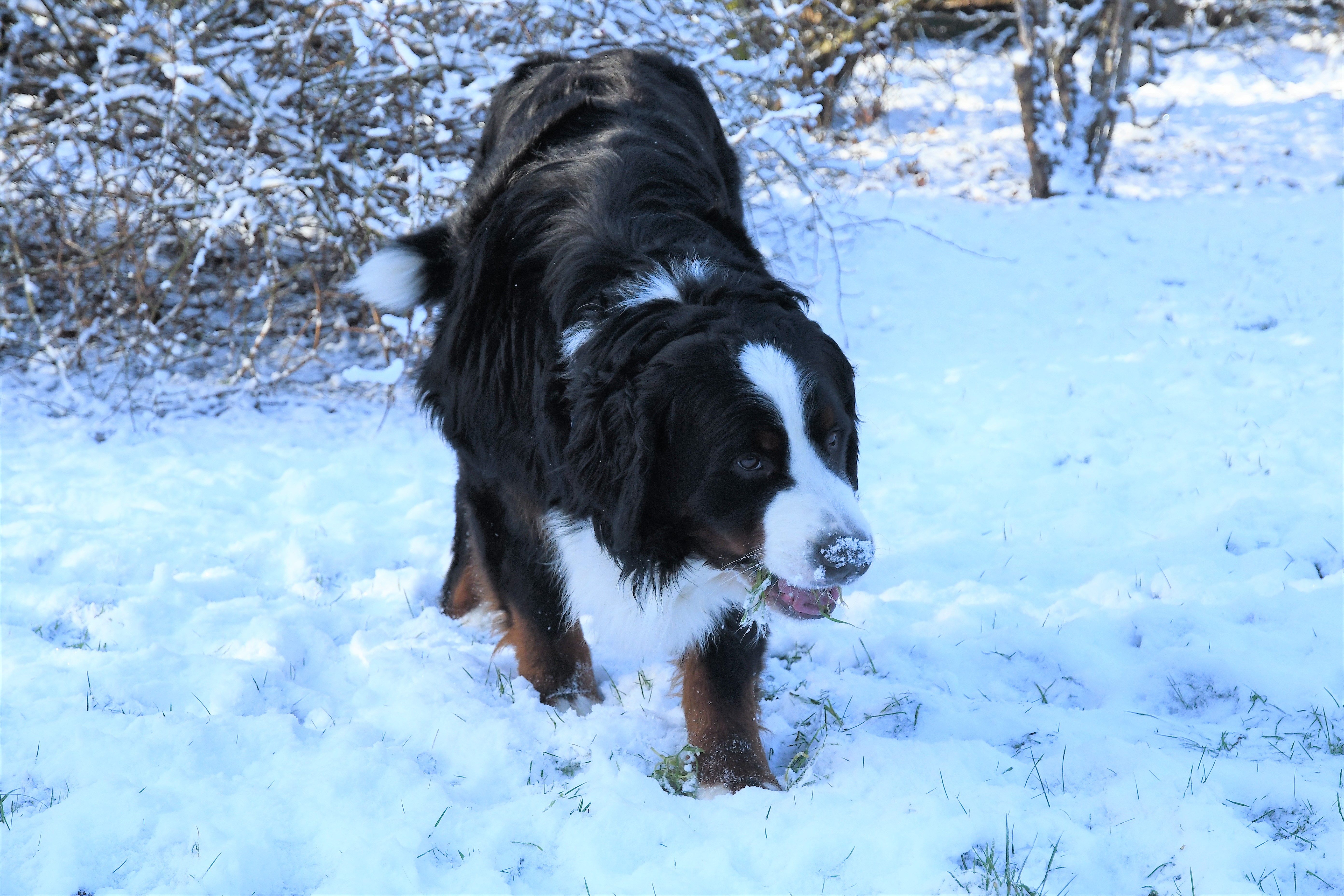 Ja, Dusty findet den Schnee supergut. Ich glaube, alle größeren, langhaarigen Hunde lieben Kälte und Schnee. Wir hatten ja bisher nur größere Langhaarer und alle fanden das Winterwetter mit Schnee wunderschön.