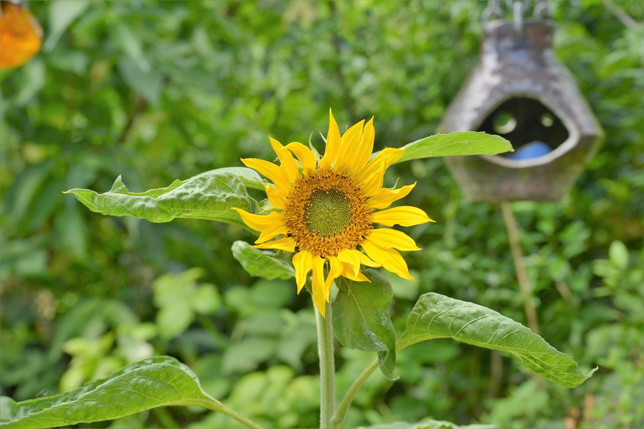 Hurra, nach wenigen Tagen zeigte sich die erste kleine Pflanze, allerdings kamen uns die Blätter unüblich vor. In den anderen Schalen zeigte sich noch nichts. Unsere "Tomatenpflanze " wuchs sehr schnell und wurde uns immer unheimlicher... Inzwischen wußten wir, daß es sich dabei um einen Identitätsbetrug handelte! Wir haben dann diesem Betrüger ein neues Heim in einem größeren Topf gegeben und er hat uns seine tatsächliche Abstammung verraten: Er nennt sich Sonnenblume und fühlt sich bei uns pudelwohl!