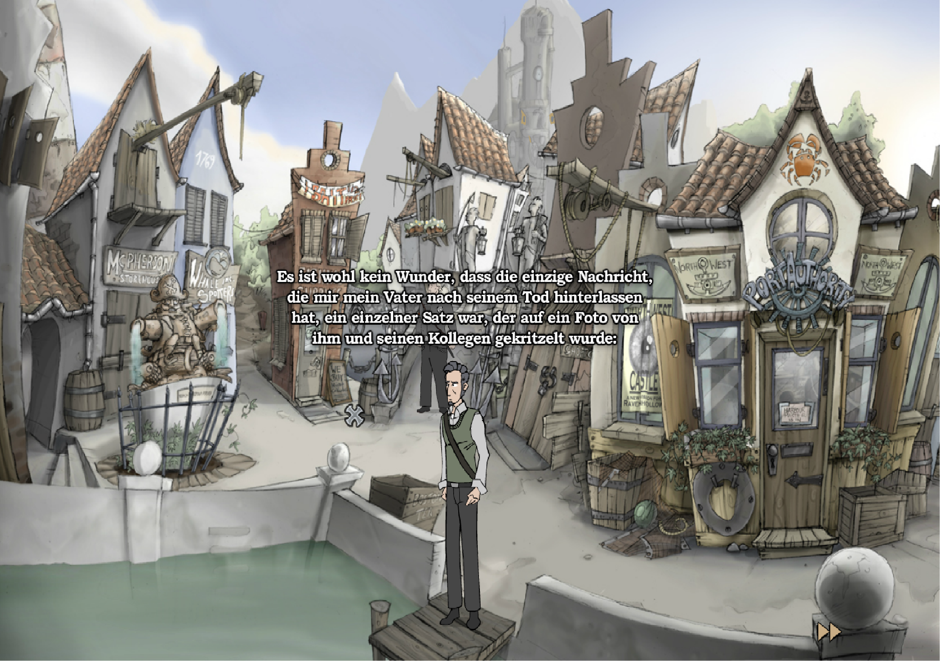 Die Geschichte ist an Kafkas "Das Schloss" angelehnt, optisch erinnert es ein wenig an Monkey Island 3, aber in etwas ernsterer Grafik und es verfügt auch über eine besonders aus heutiger Sicht ordentliche Spielzeit von 12 Stunden oder so. Was will man mehr?